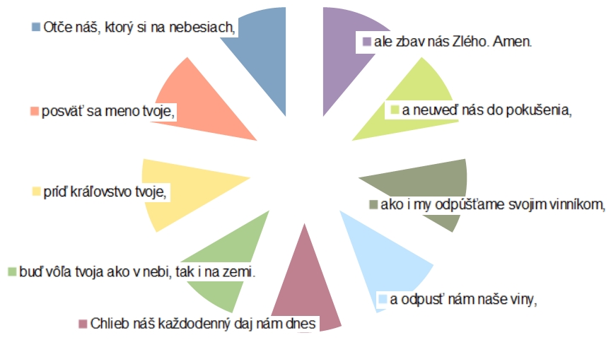Každá myšlienka preložená zo symboliky do mojej alternatívy významu nadobúda nový a nový rozmer, keď sa uvedomí vo vzťahu k hociktorému veršu. Napríklad posväť sa meno tvoje + chlieb náš každodenný daj nám dnes = je dôležité že som kto som, a mám svoje potreby, uvedomujem si ich a beriem si uspokojenie.